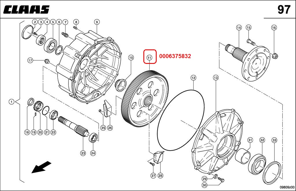 Колесо зубчатое цилиндрическое (передача) 0006375832/637583.2 на CLAAS JAGUAR 820-8700/ LEXION 405/410/MEDION 310/330/TUCANO 320/330/MEGA 203/204/350